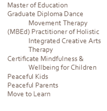 I have worked as a Primary School teacher for 22 years before becoming a Holistic Integrated Creative Arts Therapy Practitioner. Having worked with so many children who have experienced enormous difficulties in their lives, I wanted to be able to do more to help. I completed my Graduate Diploma in Dance Movement Therapy, working with people with disabilities and in nursing homes. My passion is to help people to feel empowered to live their best life, helping and supporting each person in their own way to move forward into the future.